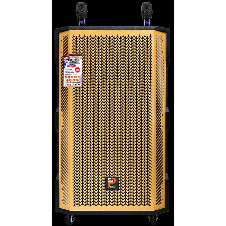 Loa Karaoke di động Bluetooth Prosing W-15 Super Vàng-Đen tặng kèm 2Mic hợp kim - Hàng chính hãng