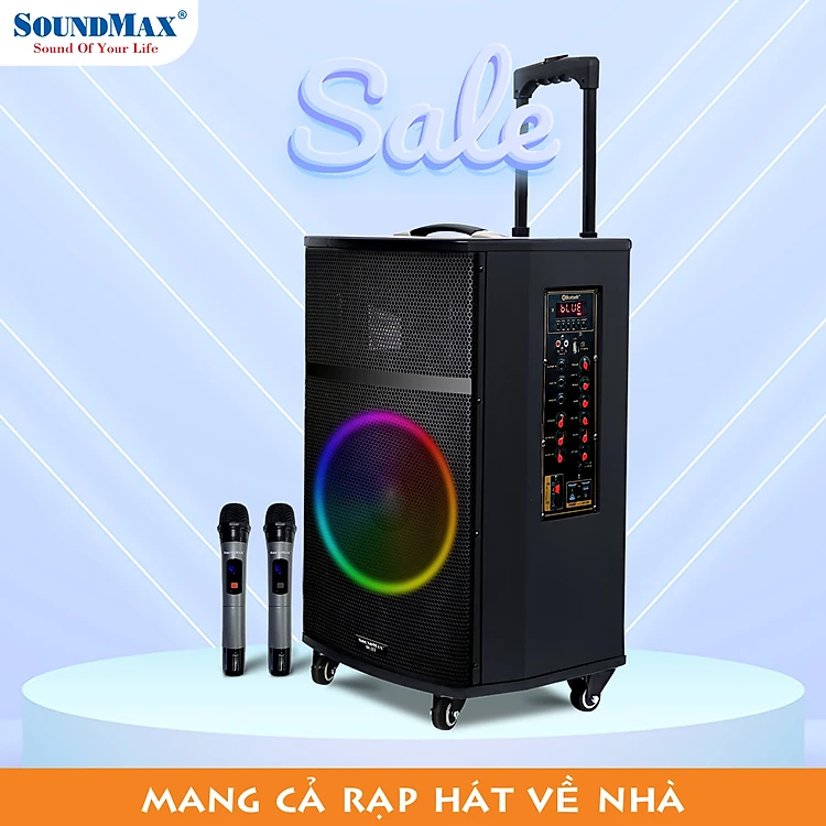 Loa Karaoke Di Động SoundMax M-33 | Loa Bluetooth SoundMax M33| Trolley Speaker | Công suất 100W, Bass 12" | Hỗ trợ USB, Thẻ Nhớ TF, Đèn LED RGB | Tặng 2 Micro Không Dây | Ngõ Vào Guitar - Hàng Chính Hãng