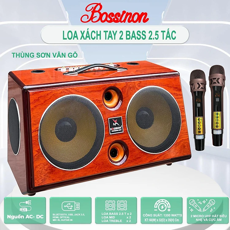 Loa karaoke xách tay bass 2T5 đôi BOSSINON N2534K- Hàng Chính Hãng, công suất siêu khủng lên đến 800W, siêu đẹp