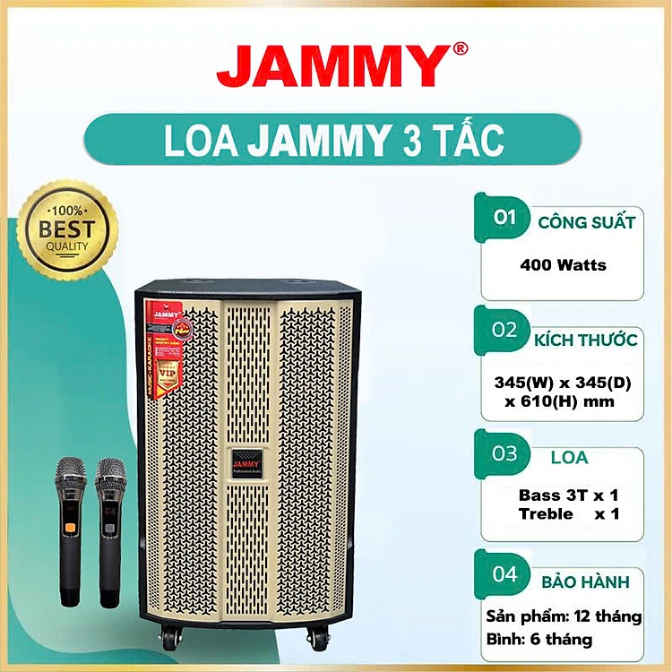 Loa kéo 3 tấc Jammy F3035K - _Kích thước: 345 (W) x 345(D) x 610 (H)mm _Công suất: 400Watts- Hàng chính Hãng