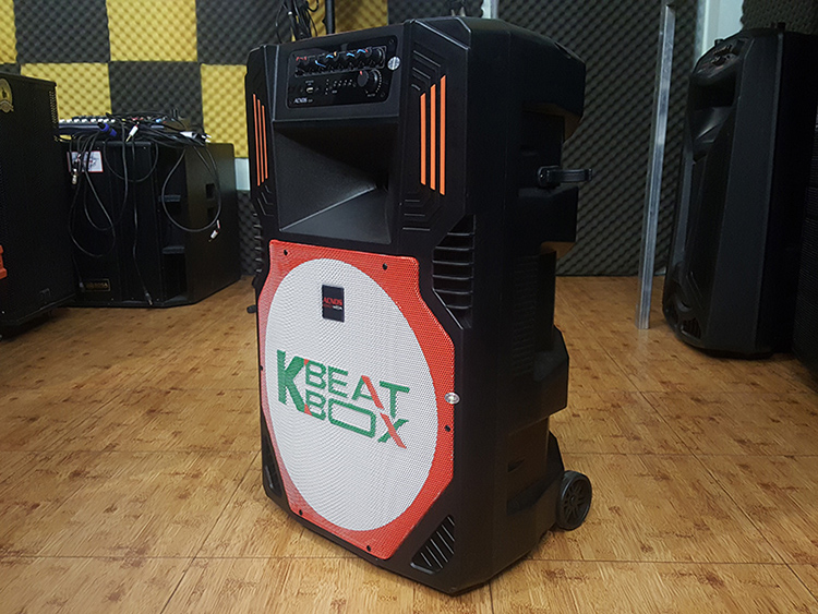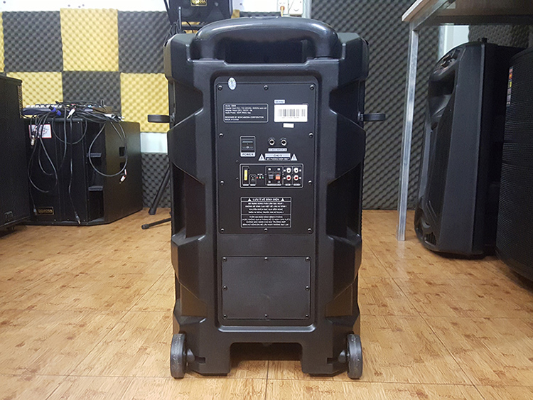 - Loa có hỗ trợ 2 bánh xe phía sau, 1 tay kéo dài giúp việc di chuyển của loa trở nên dễ dành nhất có thể. Đi kèm theo loa còn có một cặp micro có tần số tương thích với loa, khiến việc trải nghiệm khoảng thời gian karaoke trọn vẹn nhất.
