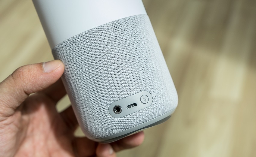 – Về thiết kế bên trong: có hệ thống loa 360 độ đặt ở nửa bên dưới tách biệt hoàn toàn với phía trên là lớp nhựa mờ với hệ thống đèn LED nhiều màu tích hợp bên trong.