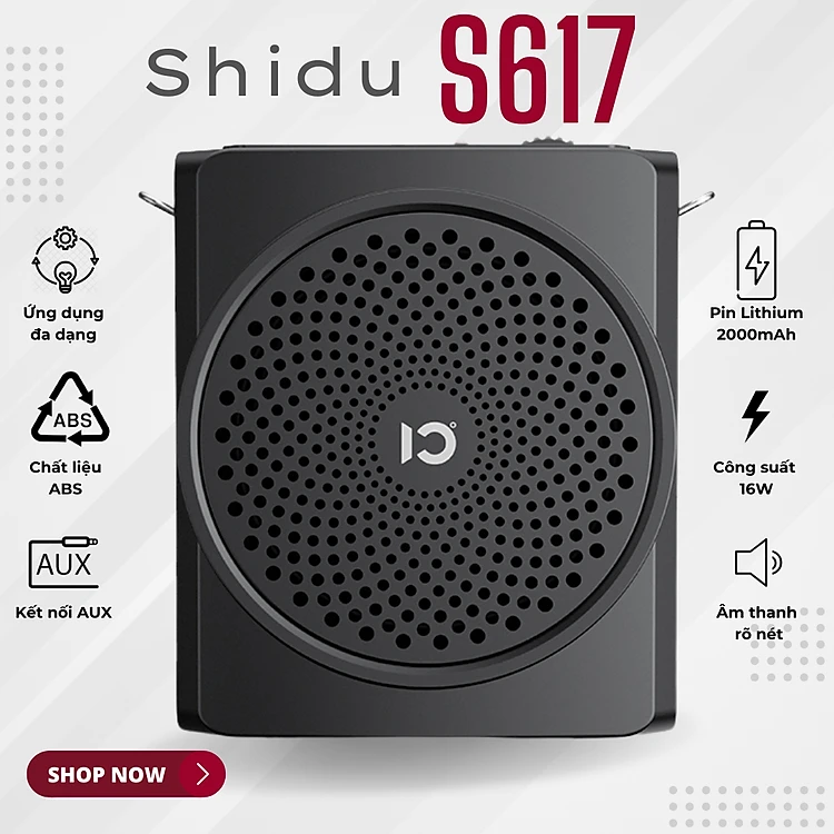 Loa trợ giảng Shidu SD-S617 - Âm thanh sống động, pin siêu bền, thiết kế nhỏ gọn | Trợ giảng chuyên nghiệp, lý tưởng cho giáo viên, hướng dẫn viên, bán hàng, livestream | Công suất 16W, kết nối đa dạng, giá cả phải chăng | Hàng Nhập Khẩu