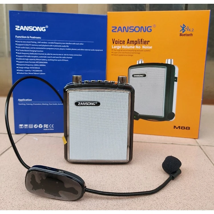 Loa trợ giảng Zansong M88 - Máy trợ giảng kèm micro cài tai không dây - Kết nối Bluetooth 4.2, AUX, USB, SD card, FM - Công suất 10W, điều chỉnh được echo - Pin sạc dung lượng lớn thời gian dùng lên đến 6h - Âm thanh rõ ràng, sắc nét - Hàng nhập khẩu