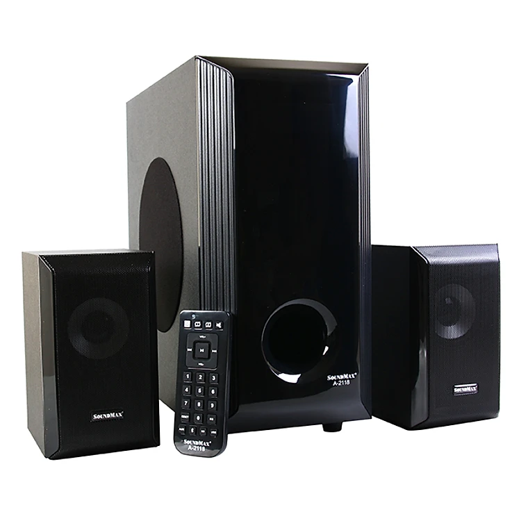 Loa Bluetooth SoundMax A2118 60W với vẻ ngoài trông cứng cáp và có phần chuyên nghiệp nhờ thiết kế mặt trước trông liền lạc hơn. Loa được đánh giá cao nhờ kiểu thiết kế màng loa trên 2 loa vệ tinh, dù trông đơn giản nhưng hấp dẫn vì vừa kín kẽ vừa toát lên sự sang trọng cho loa. Màng loa hướng thẳng ra bên hông, cụm nút tinh chỉnh âm lượng, tăng cường bass, treble cũng được giấu gọn thay vì phô diễn ra mặt trước.