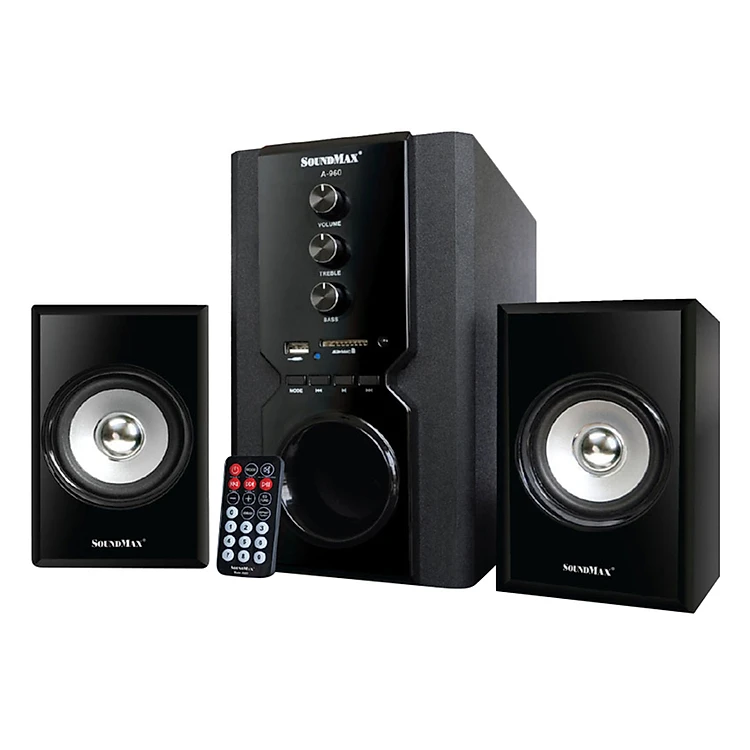Loa Bluetooth SoundMax A960 được thiết kế gồm một loa bass và hai loa vệ tinh hình trụ, các nút điều chỉnh âm lượng phía trước giúp thuận tiện trong quá trình điều chỉnh.