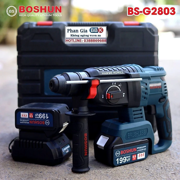 [LOẠI 1] Máy khoan bê tông BOSHUN 199V - 3 Chức Năng: Khoan, khoan búa, đục - 100% Lõi Đồng
