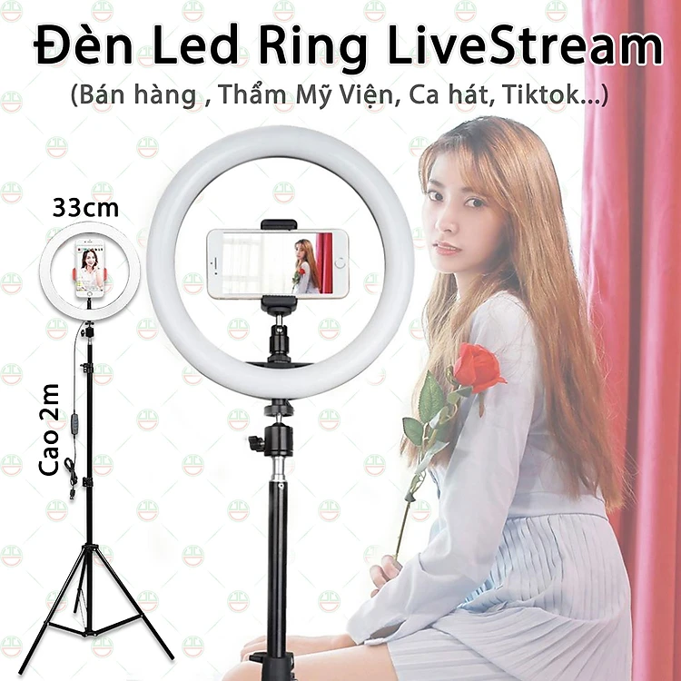 (Loại Chuẩn) Bộ Đèn LedRing LiveStream Cỡ 33cm Cao 2m1 KhoNCC Hàng Chính Hãng - Phù Hợp Idols , YouTube, Tiktok, Thẩm Mỹ Viện Phun Xăm, Bán Hàng - KLM-LEDRING33CM-FULL (Đen Trắng)