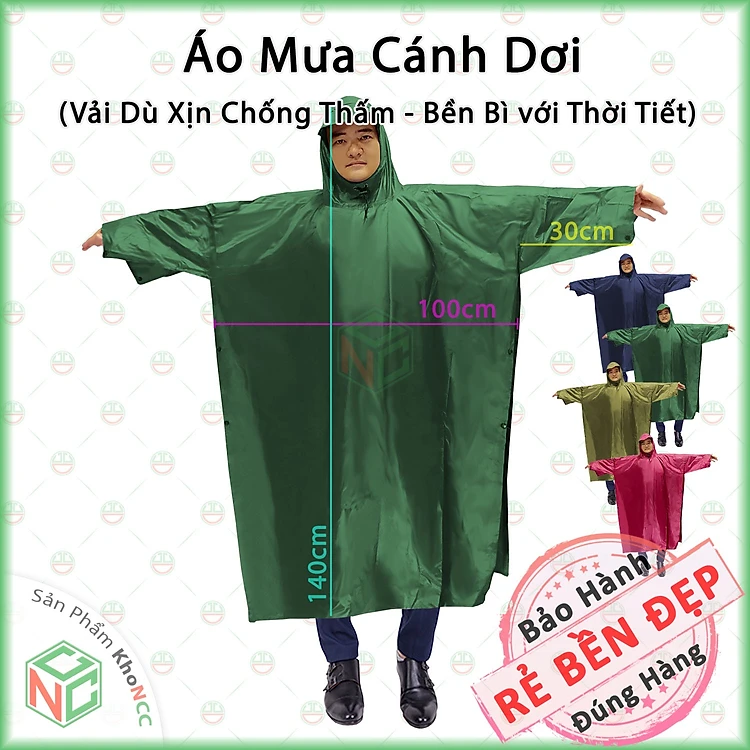 (Loại Tốt) Áo Mưa Cánh Dơi (xẻ tà) KhoNCC - Vải Dù Cao Cấp Loại Lớn 1m4 - Che Kín 2 Người Mùa Mưa - NQL-AoMuaDu (Xanh lá, Xanh Đen, Xanh Dương, Đỏ Đô, Cỏ Úa) - Hàng Chính Hãng