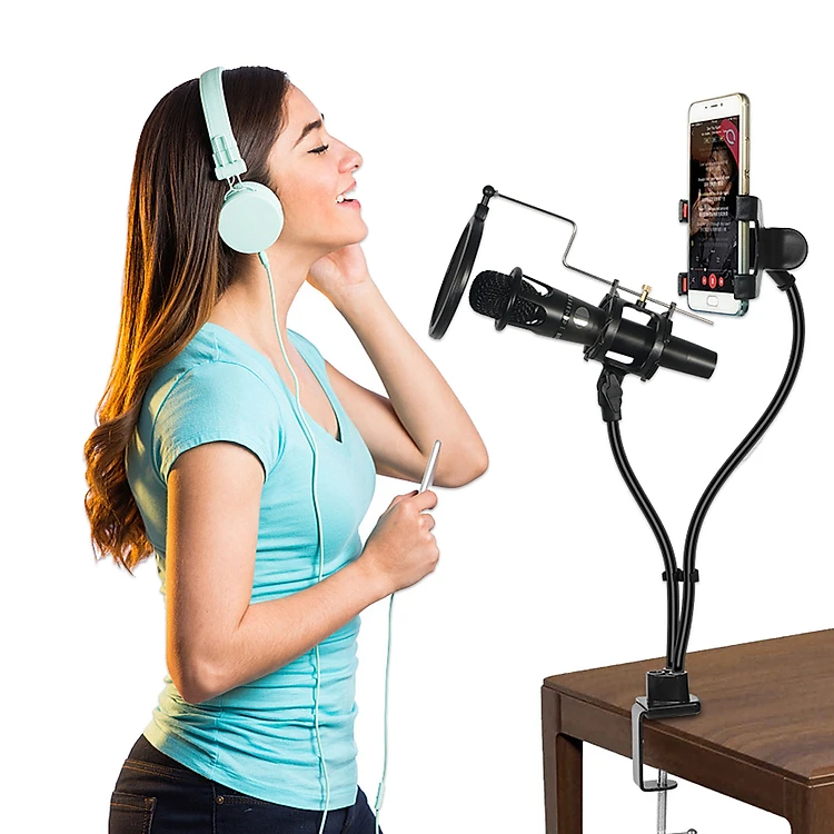 (Loại Tốt) Bộ Giá Đỡ Micro KhoNCC Có Màng Lọc - Đỡ Smartphone , Camera Mini Để LiveStream - DHS-5245-LiStre - Hàng Chính Hãng