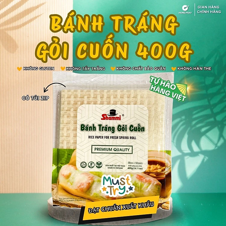 [LOẠI VUÔNG] Bánh tráng gỏi cuốn Shammi vuông size 22cm túi 400g (Bánh tráng xuất khẩu có túi zip)