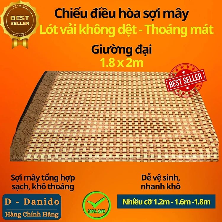 [LOẠI XỊN] Chiếu điều hòa sợi mây tổng hợp lót vải không dệt cao cấp chọn cỡ 1m2 1m6 1m8 chính hãng
