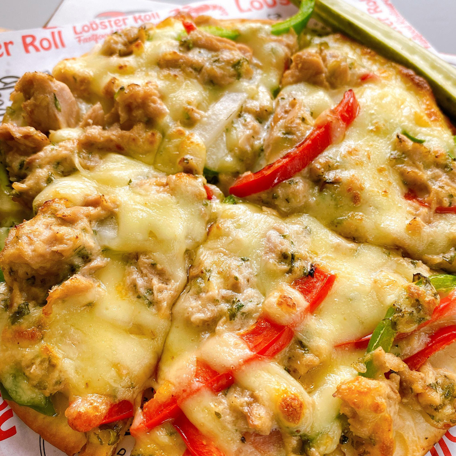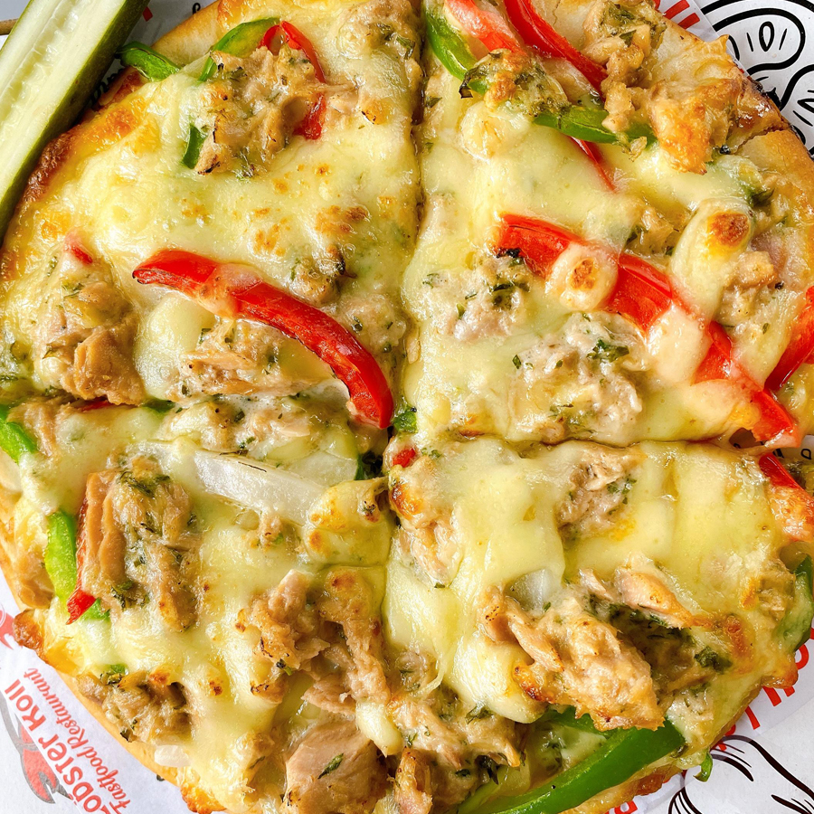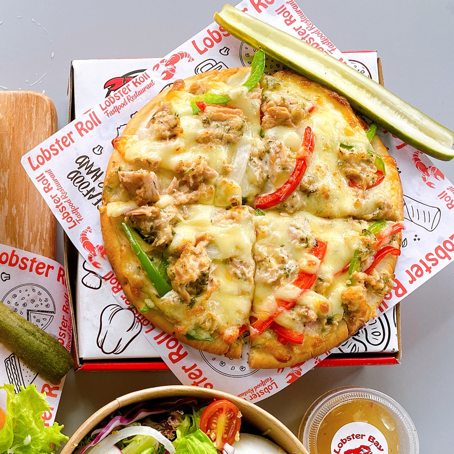 Topping pizza là phần Cá ngừ. Phần Cá Ngừ này rất ngọt, tươi bắt mắt, ngon miệng. Cá ngừ có thịt nạc nhiều, ít chất béo, giàu chất dinh dưỡng và các muối khoáng nên rất ngon và bổ dưỡng. Đặc biệt, trong cá ngừ chứa nhiều axit béo không bão hòa… Ngoài ra, trong cá có hàm lượng vitamin, nhất là vitamin D .Trên cùng của bánh pizza phủ 1 lớp phô mai Mozza tan chảy, thơm béo, đem đến hương vị tuyệt vời cho người thưởng thức.