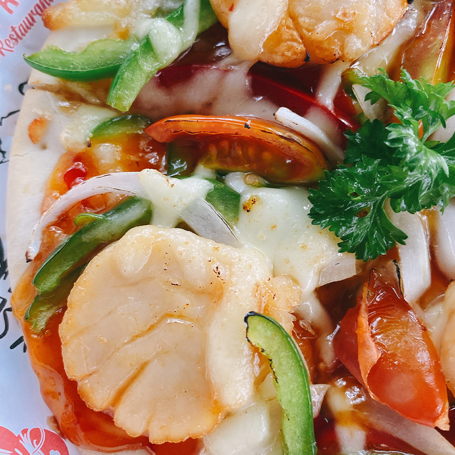 Topping pizza là phần Sò Điệp Nhật. Phần Sò Điệp Nhật này rất ngọt, tươi bắt mắt, ngon miệng.Sò Điệp Nhật dày thịt, giàu chất dinh dưỡng nên rất ngon và ăn vừa miệng cùng với rau củ quả tươi ngon.Trên cùng của bánh pizza phủ 1 lớp phô mai Mozza tan chảy, thơm béo, đem đến hương vị tuyệt vời cho người thưởng thức.