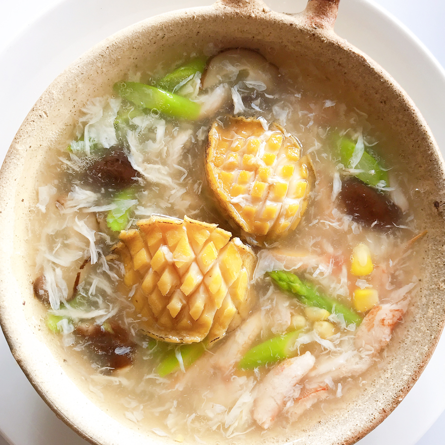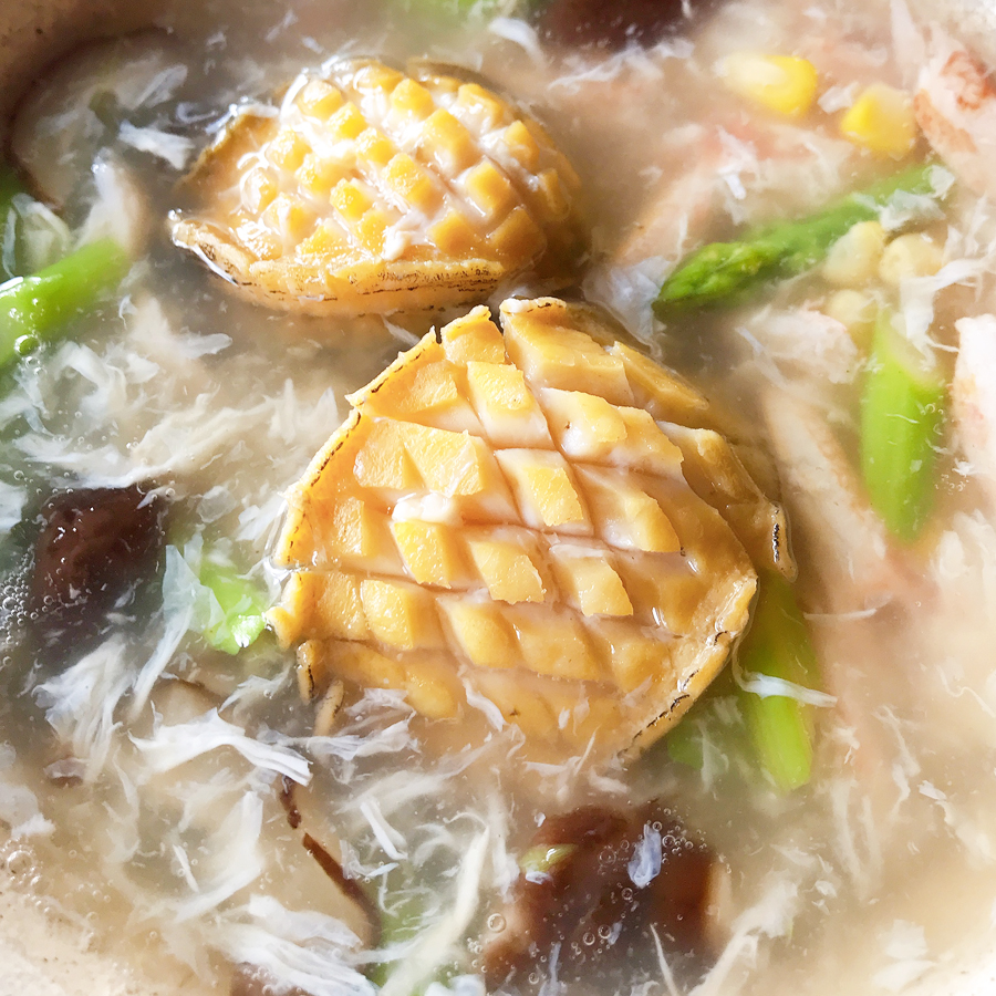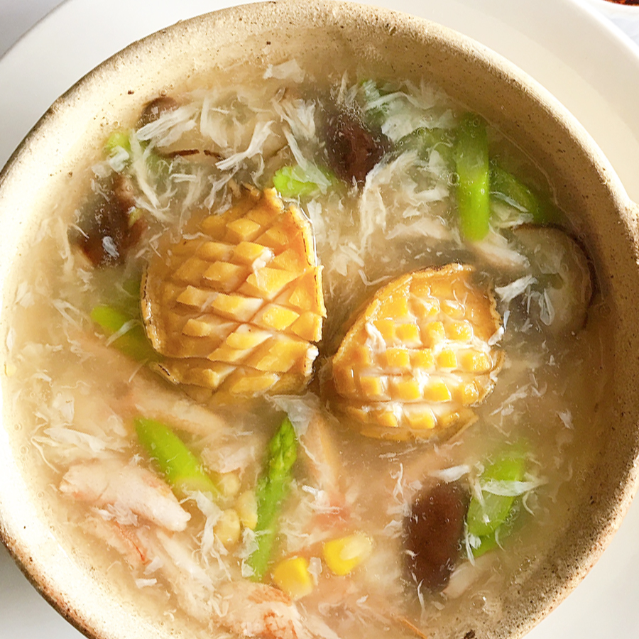 Nước dùng thanh mát kết hợp với càng ghẹ cùng vị ngọt đậm đà tự nhiên của bào ngư Hàn Quốc hòa quyện lại, thêm chút rau củ thanh mát, nấm đông cô, bắp mỹ tạo nên 1 món ăn bổ dưỡng, thanh nhiệt, ngọt mát đầy đủ dưỡng chất có lợi giúp tăng cường sức khỏe, bồi bổ cơ thể.