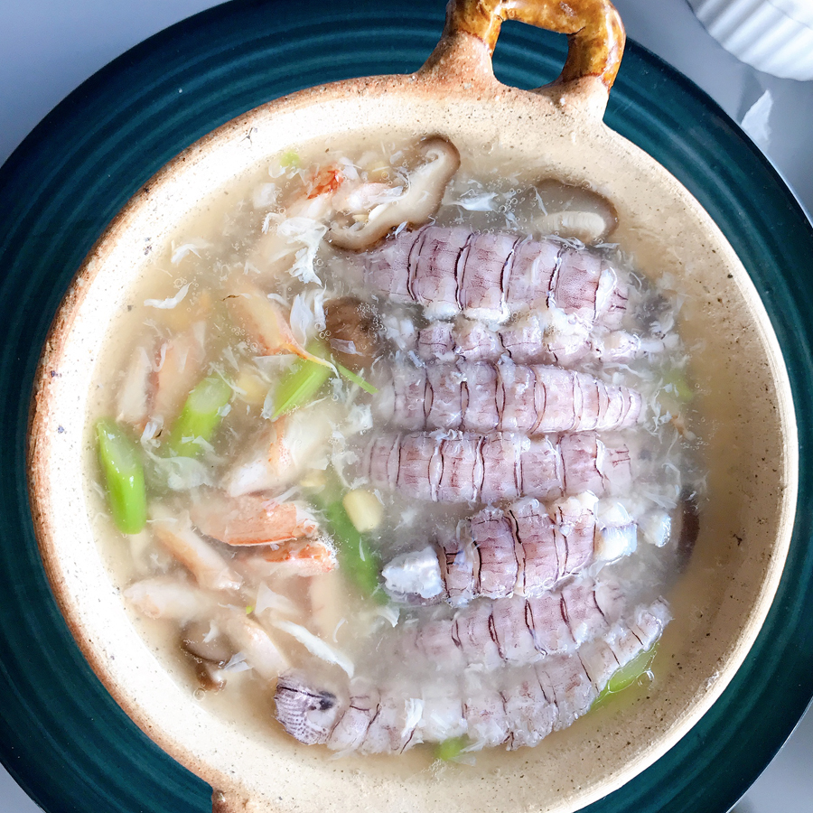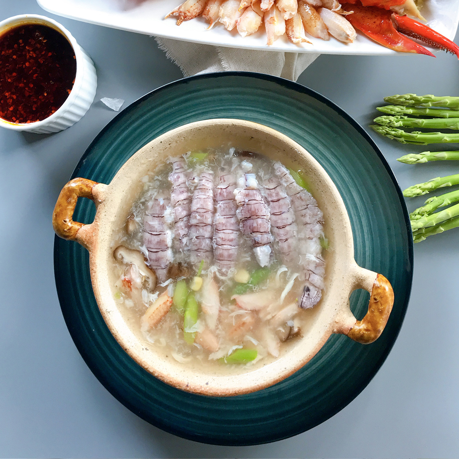 Tôm tít thiên nhiên sống, thịt ngon, ngọt, dai chắc, cùng vị đậm đà hương biển của ghẹ. Kết hợp Kết hợp cùng với rau củ thanh mát, bắp mỹ, tạo nên món súp Tôm Tít & Ghẹ thanh mát, ngọt lành, tốt cho sức khỏe.