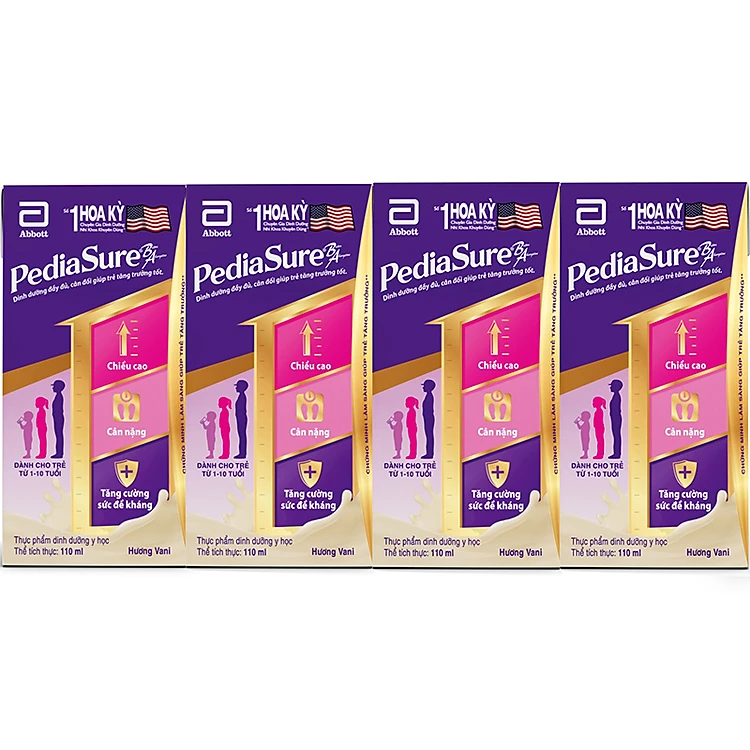 - Sữa Nước Pediasure Vani 110ml dành cho trẻ 1-10 tuổi, bao gồm trẻ tăng trưởng kém (nhẹ cân, thấp còi, suy dinh dưỡng, hay ốm), trẻ biếng ăn, trẻ có nhu cầu năng lượng tăng cao.