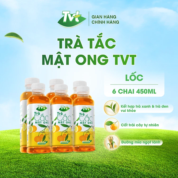 [Lốc 06 chai 450ml] Trà Tắc Mật Ong TVT tinh chất trà xanh, mật ong, quả tắc, mát lành thanh khiết, tốt cho tim mạch