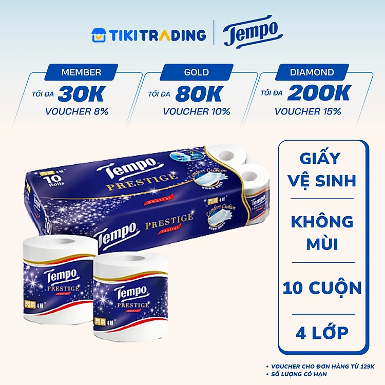 Lốc 10 Cuộn Giấy Vệ Sinh Tempo Prestige - Không mùi