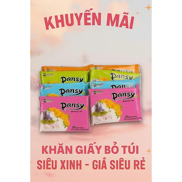 Lốc 10 gói khăn giấy khô PANSY dạng ví bỏ túi tiện dụng 20 tờ/gói, mềm mịn dùng 1 lần Giấy Ăn