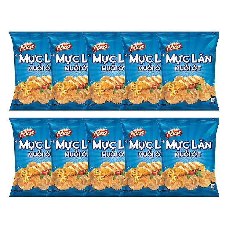 Lốc 10 Snack Poca Vị Mực Lăn Muối Ớt (37g)