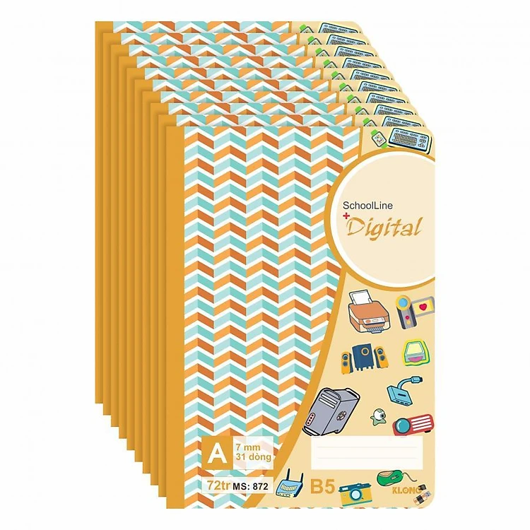 - Lốc 10 Tập (vở) Kẻ Ngang Digital (72 trang) KLONG 872 có mặt giấy láng mịn, viết êm tay, tạo nét chữ đẹp. Với định lượng 58 g/m2 giấy viết không bị lem, độ trắng 90-92% không làm hại mắt, ăn mực hầu hết các loại bút, giấy viết không nhòe, không thấm mực ra trang sau.