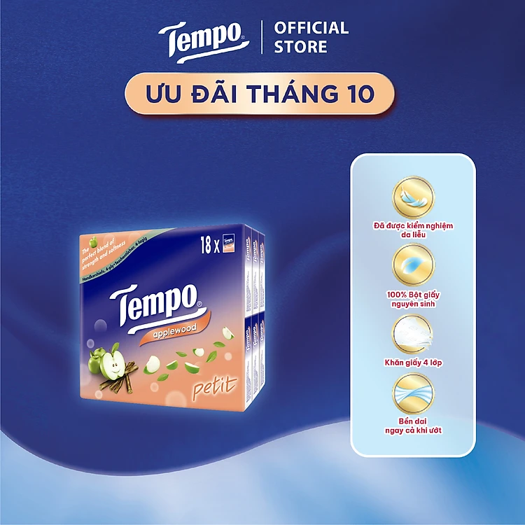 [LỐC 18 GÓI] Khăn giấy bỏ túi cao cấp Tempo Petit 18 - 4 lớp bền dai, được kiểm nghiệm da liễu - Thương hiệu Đức (18 Gói/Lốc)