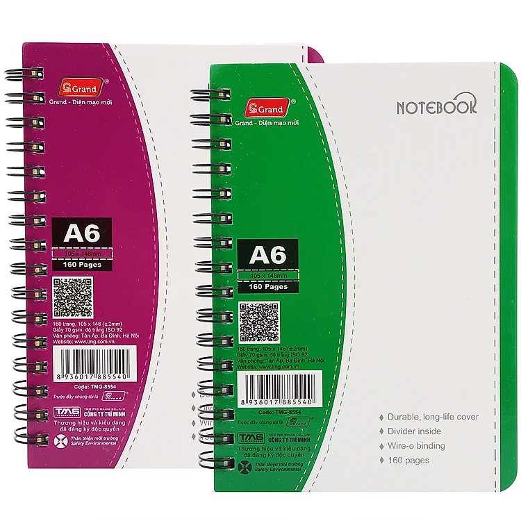 Lốc 2 Sổ Lò Xo Grand 8554 A6 - 160 Trang