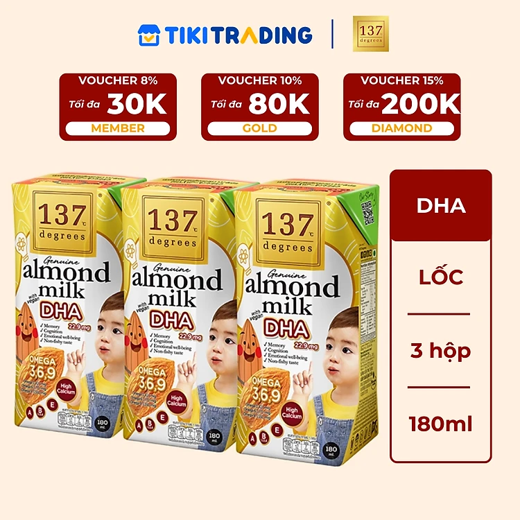 Lốc 3 hộp Sữa hạt Hạnh nhân DHA 137 DEGREES 180ml