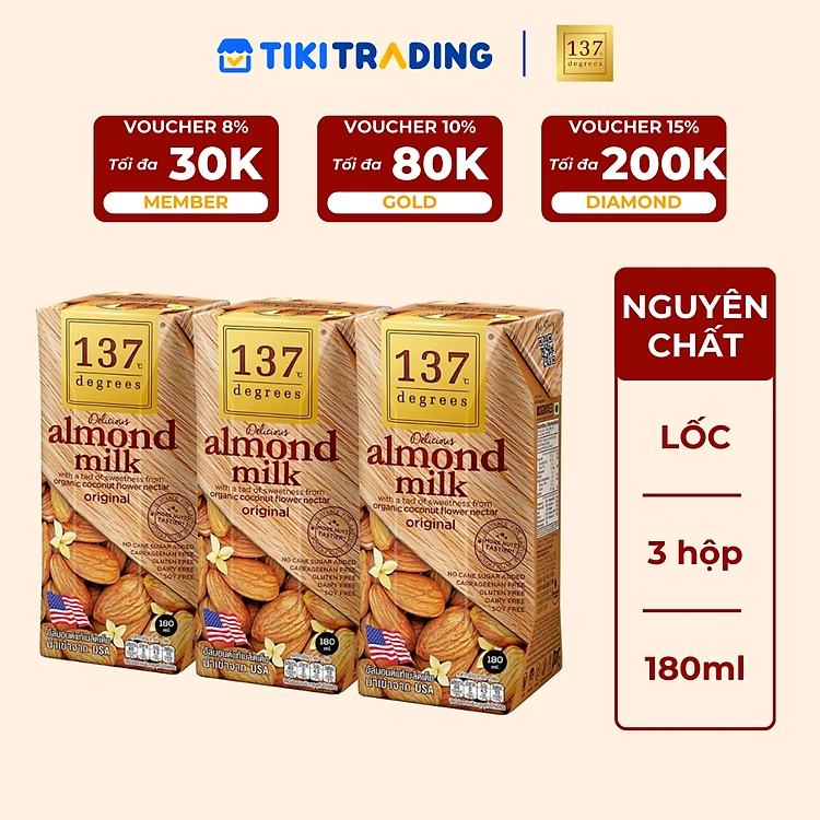 Lốc 3 hộp Sữa hạt Hạnh nhân Nguyên chất 137 DEGREES 180ml