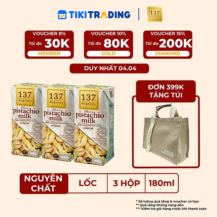 [ĐƠN 399K TẶNG TÚI] Lốc 3 hộp Sữa hạt Hạt dẻ Nguyên chất 137 DEGREES 180ml