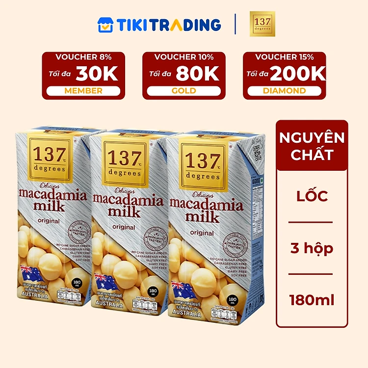 Lốc 3 hộp Sữa hạt Macca Nguyên chất 137 DEGREES 180ml