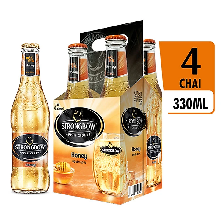 Lốc 4 Chai Nước Táo Lên Men Strongbow Honey - Vị Mật Ong (330ml / Chai)