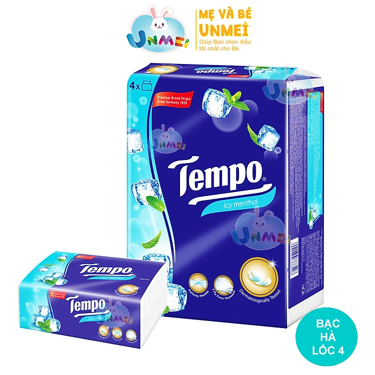 Lốc 4 Gói Khăn Giấy Cao Cấp Tempo Softpack Mùi Bạc Hà, 4 Lớp, Không Gây Kích Ứng Da (90 Tờ/ Gói) - Thương Hiệu Đức