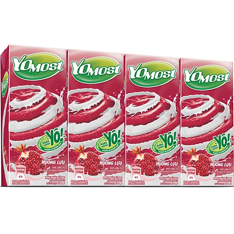- Lốc 4 Hộp Sữa Chua Lên Men Tự Nhiên Yomost Trái Lựu là thức uống từ sữa chua lên men tự nhiên với hương trái cây thơm ngon, mang lại nguồn dinh dưỡng cần thiết cho bé.