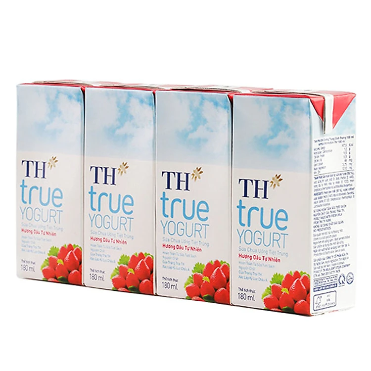 Lốc 4 Hộp Sữa Chua Uống Tiệt Trùng Hương Dâu Tự Nhiên TH True Yogurt (180ml) với xuất xứ nguyên liệu đầu vào được sử dụng hoàn toàn sữa tươi sạch nguyên chất của trang trại TH.