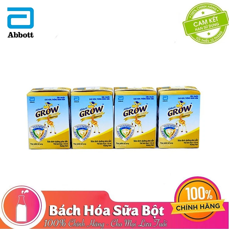 Lốc 4 Hộp Sữa Nước Abbott Grow Gold Hương Vani 110ml/180ml