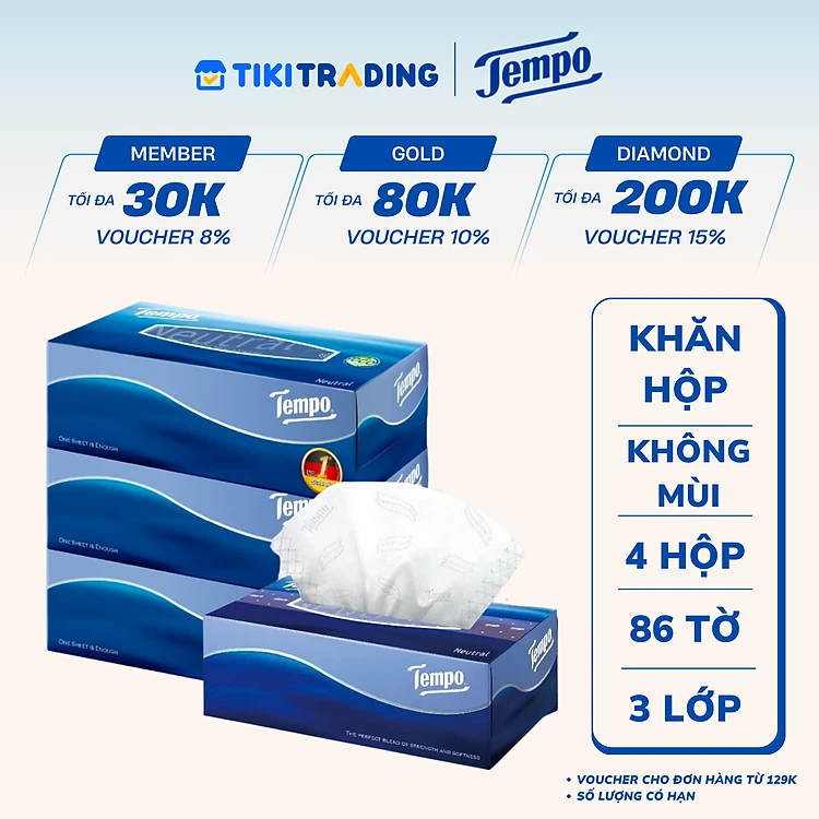 Lốc 4 Khăn Giấy Hộp Tempo 86 Tờ - Không Mùi