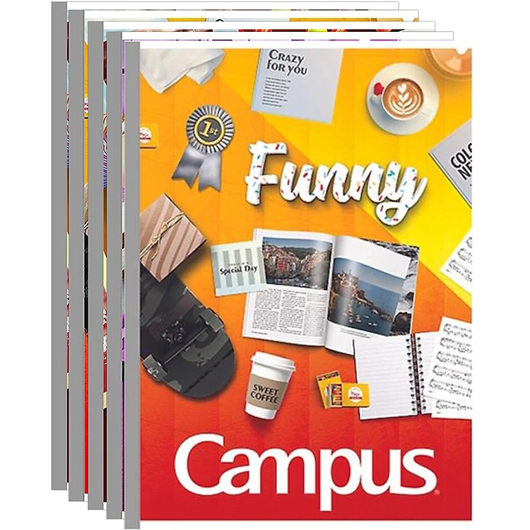 - Thiết kế bìa tập với hình những món đồ trang trí, các quà tặng dễ thương bắt mắt, sinh động và là thiết kế độc quyền của Campus.
