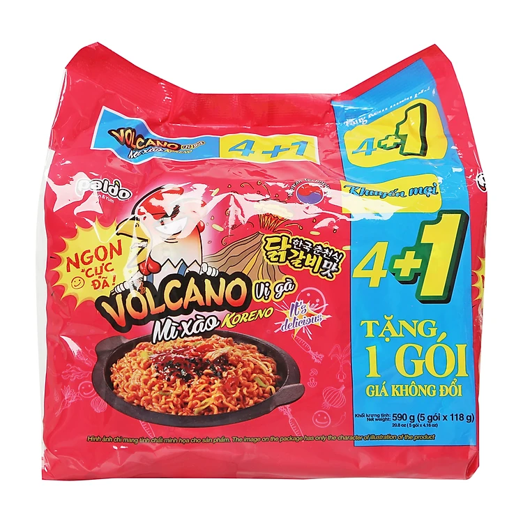 Lốc 5 Mì Xào Koreno Volcano Vị Gà 118G
