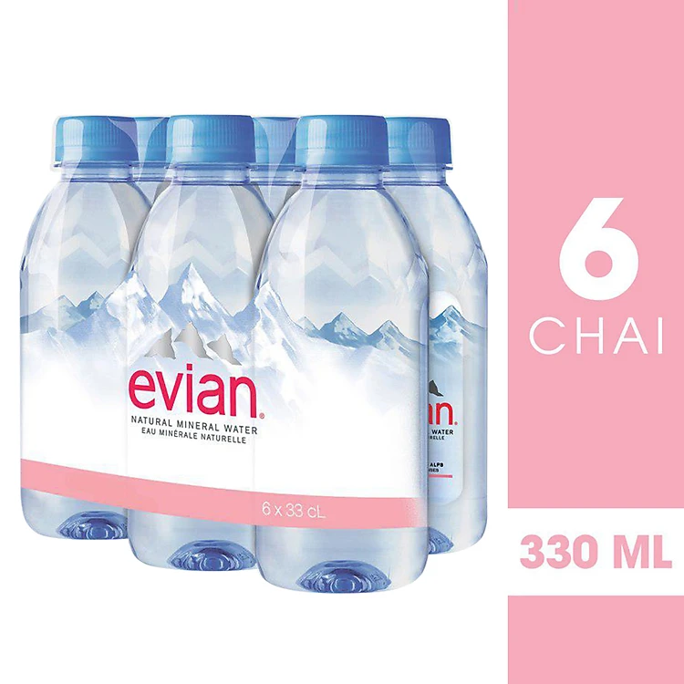 - Lốc 6 Chai Nước Khoáng Evian Chai Nhựa (330ml / Chai) được khai thác và đóng chai trực tiếp từ nguồn nước ngầm thuộc dãy Alps 8000 năm tuổi, có mặt trên 143 quốc gia toàn thế giới và không ngừng phát triển.