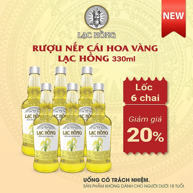 [COMBO 6 CHAI] Rượu Nếp Cái Hoa Vàng Lạc Hồng vị nguyên bản chưng cất theo phương pháp truyền thống 330ml