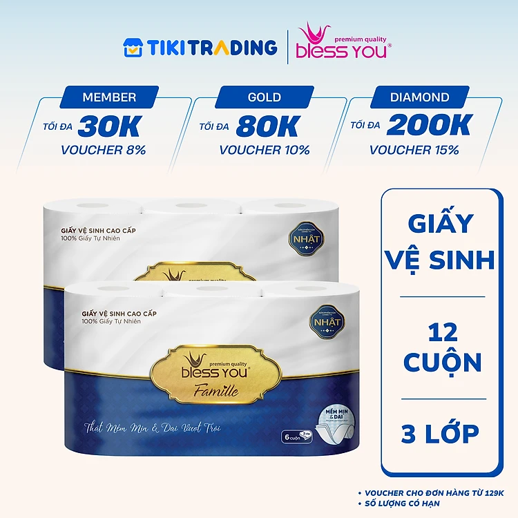 Combo 2 Lốc Giấy Cuộn Vệ Sinh Bless You Famille 3 Lớp (Lốc 6 Cuộn)