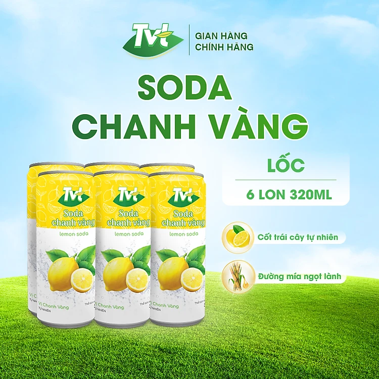 [Lốc 6 lon 320ml] Soda Chanh VàngTVT - Nước cốt chanh vàng tự nhiên cùng soda nhẹ nhàng