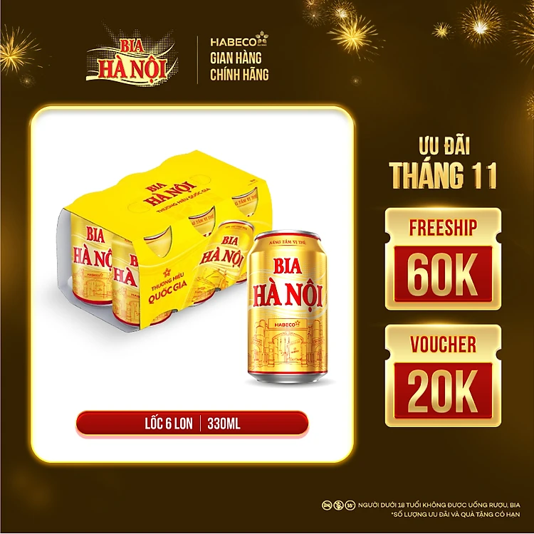 Lốc 6 lon Bia Hà Nội (330ml/lon)