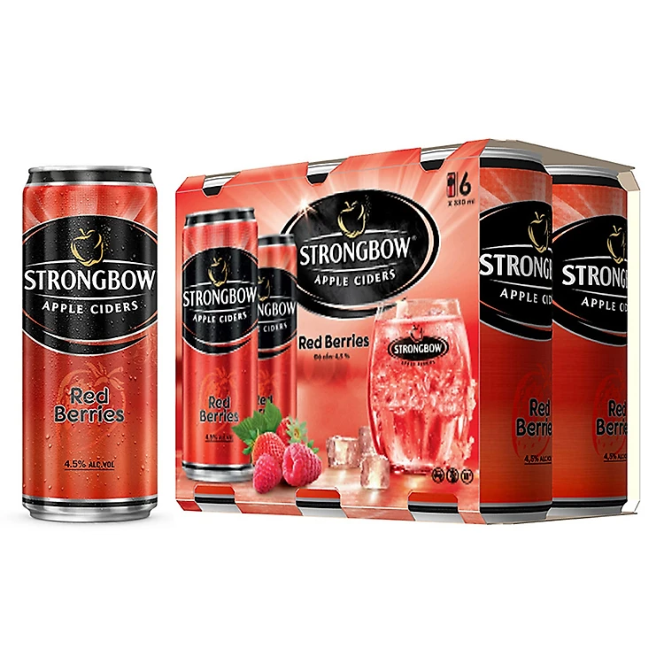 - Lốc 6 Lon cao Strongbow vị Dâu đỏ (330ml x 6 Lon) là loại thức uống có nguồn gốc từ châu Âu và đã phổ biến toàn cầu với cách thức chế biến đầy ấn tượng từ quá trình lên men táo tự nhiên mang đến men say thuần khiết, hài hòa và đầy cuốn hút.