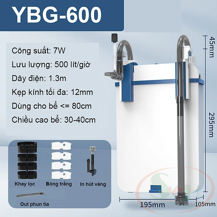 Lọc treo Sunsun YBG 300, 400, 500, 600 hút váng xoay lọc mini bể cá tép thủy sinh