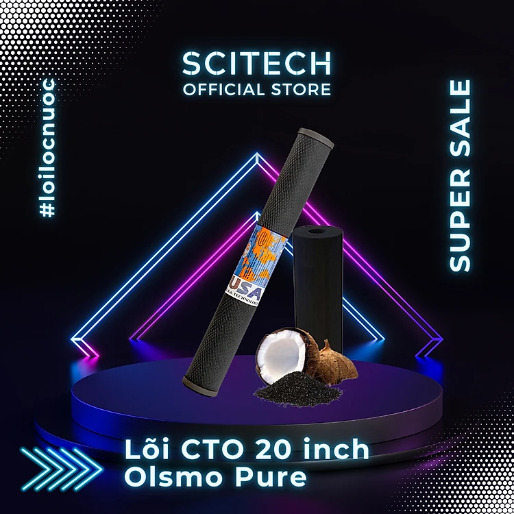 Lõi lọc nước số 3 CTO 20 inch Olsmo Pure by Scitech dùng trong máy lọc nước RO, bộ lọc thô - Hàng chính hãng