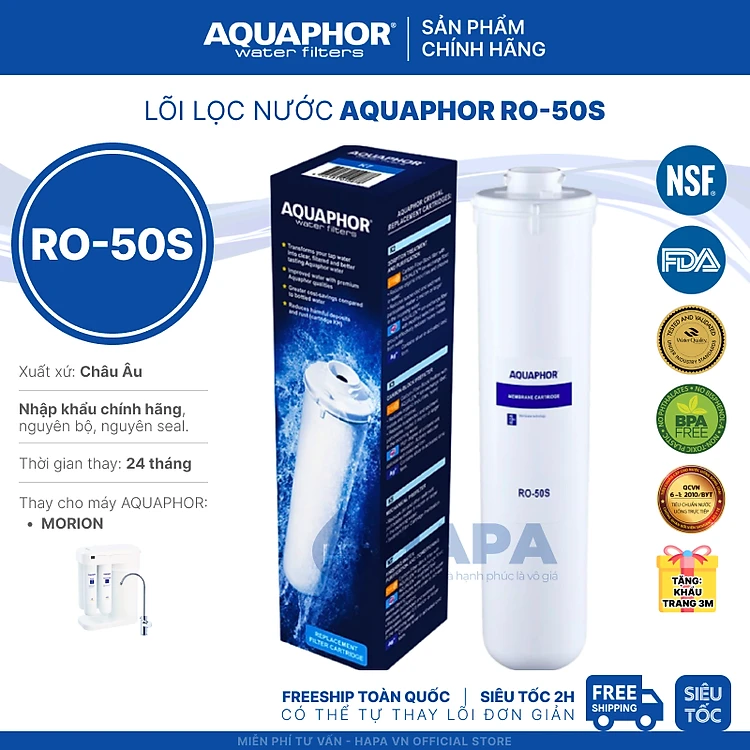 Lõi Lọc Nước AQUAPHOR RO-50S MEMBRANE Thay Cho Máy Lọc Nước AQUAPHOR MORION - Hàng Chính Hãng
