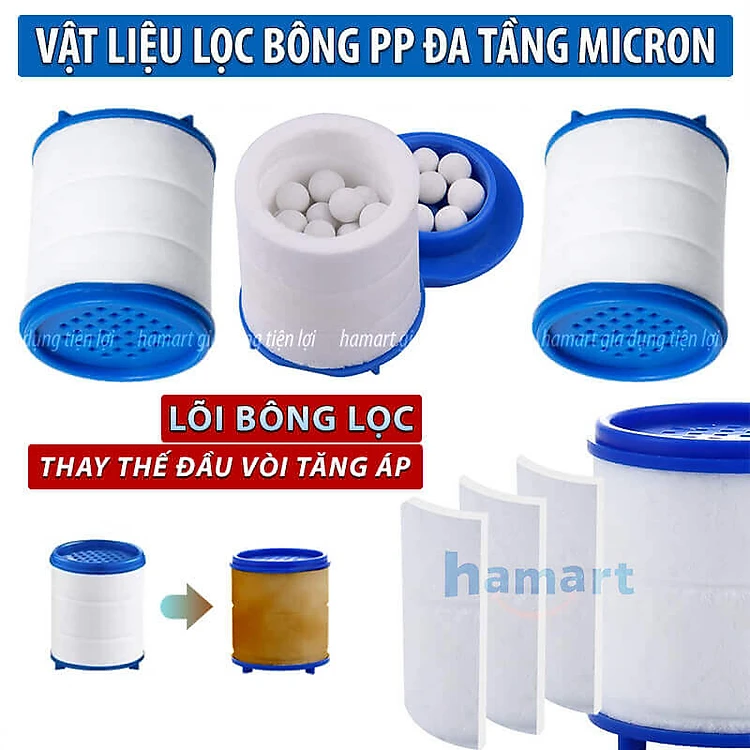 Lõi Lọc Nước Bông PP Thay Thế Cho Đầu Tăng Áp Gắn Vòi Rửa Chén Bát Sạch Cặn Bẩn Khử Clo Hiệu Quả